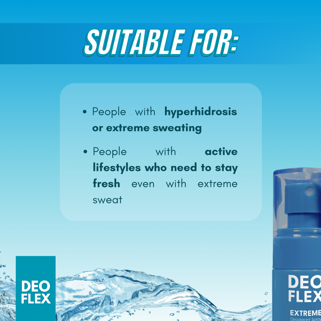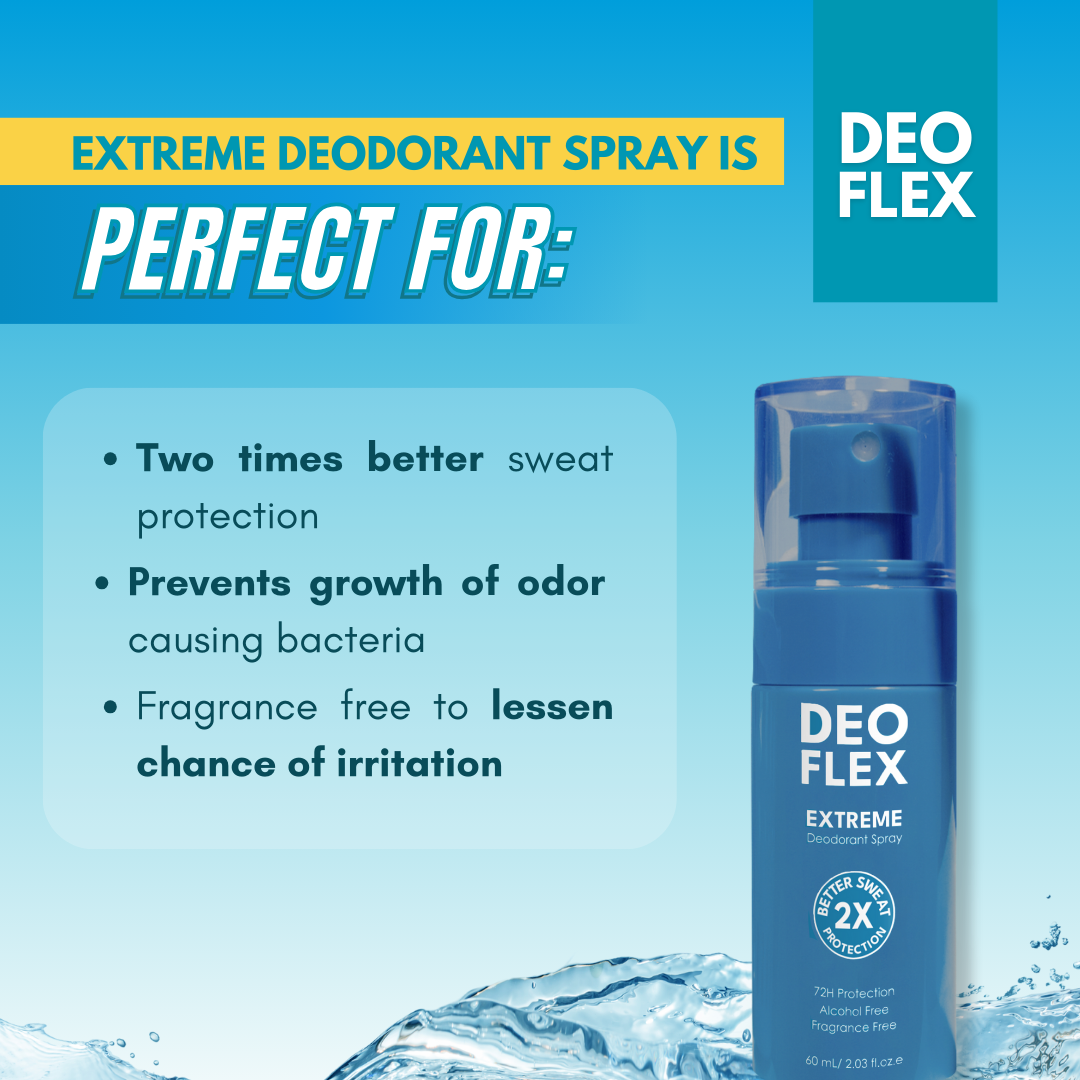 Made for people with active lifestyles or hyperhidrosis, Deoflex Extreme Deodorant Spray responds quickly to odor and wetness. With 2x better sweat protection, this formula targets wetness from the source, so you can achieve unstoppable freshness.