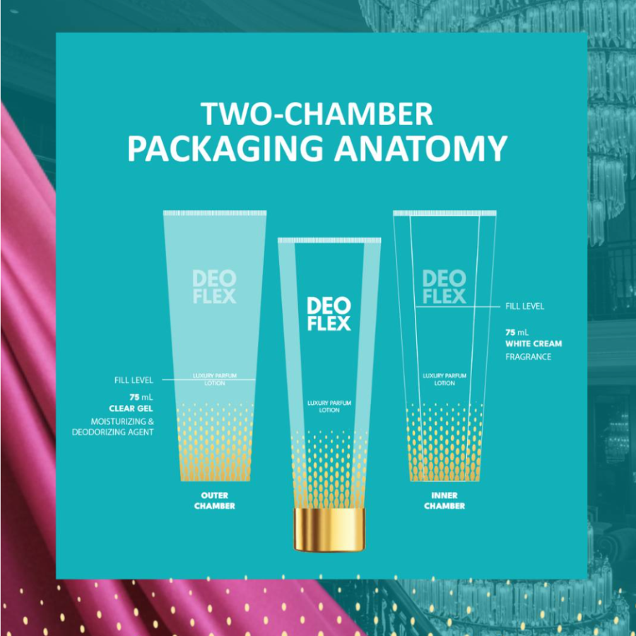 The Deoflex Luxury parfum Lotion is a dual chamber product that combine three benefits into one. It’s designed to provide a long-lasting scent of a luxury perfume, the moisturizing and skin lightening properties of a body lotion and the odor fighting power of a deodorant gel